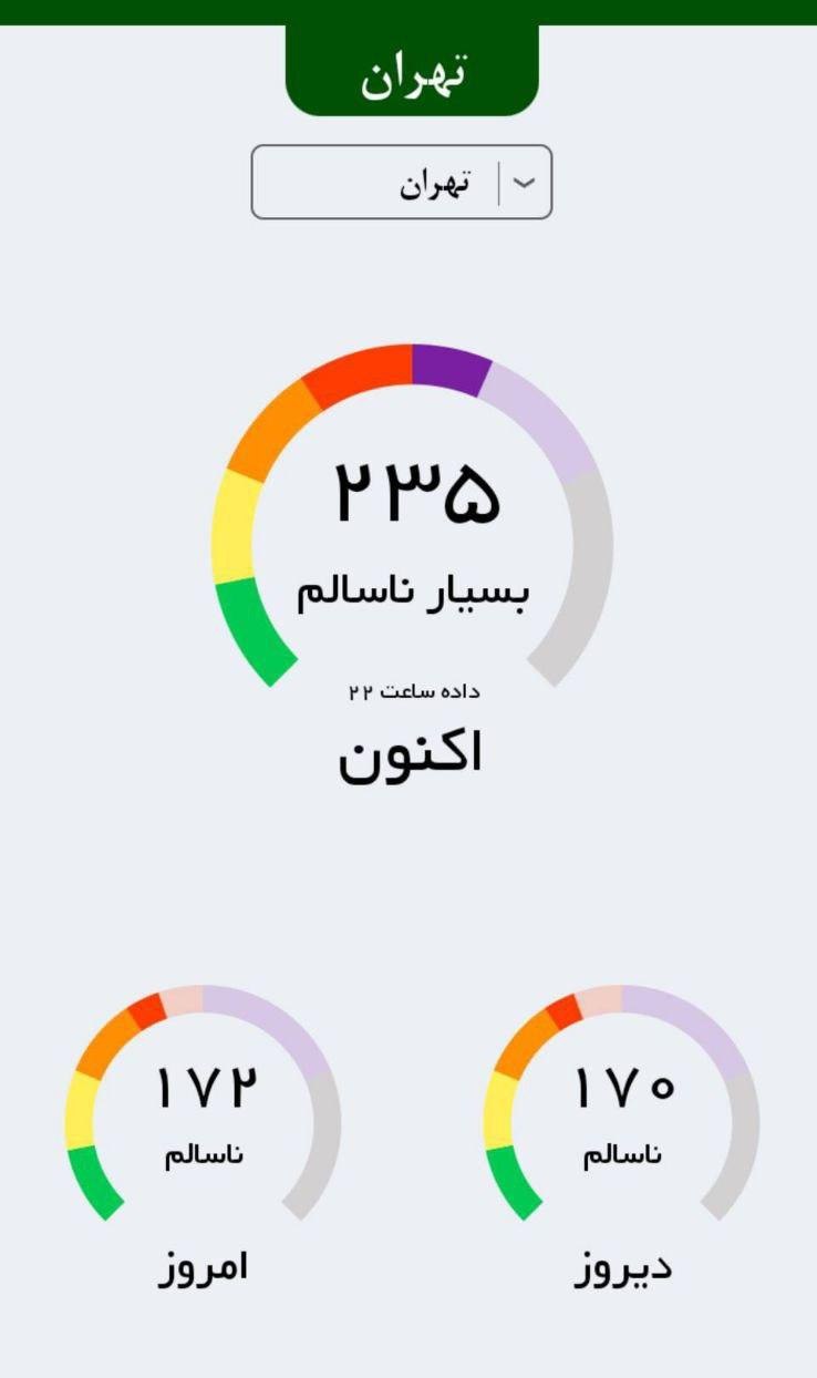 فرارو: بر اساس اعلام شرکت کنترل کیفیت هوای تهران، میانگین کیفیت هوای پایتخت هماکنون در شرایط ناسالم است.
