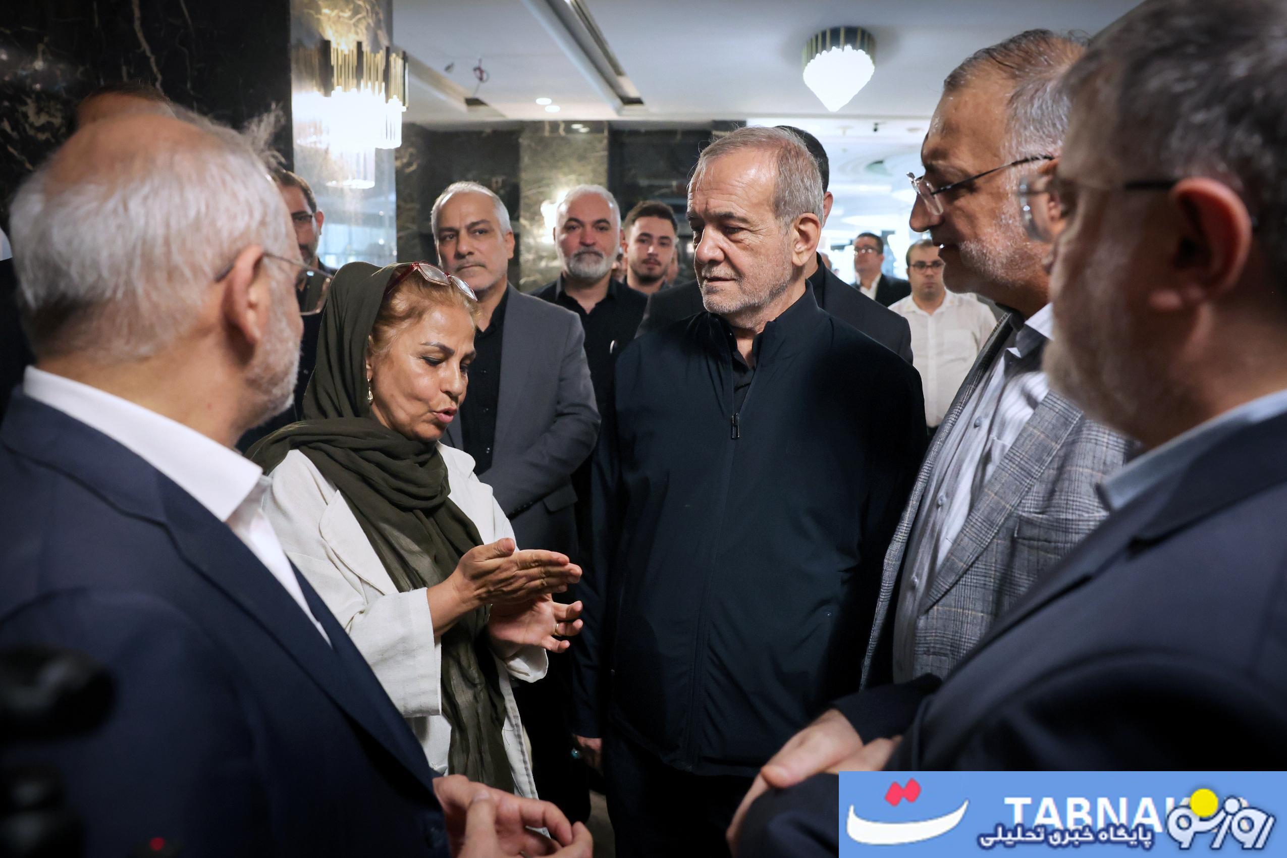 دکتر مسعود پزشکیان رئیس جمهور به همراه دکتر علیرضا زاکانی شهردار تهران ظهر دوشنبه با حضور در یکی از هتل‌های شهر تهران با جمعی از خانواده‌های آسیب دیده از جنگ ۱۲ روزه دیدار و گفت‌و‌گو کرد.