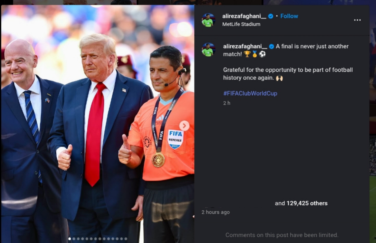 پست علیرضا فغانی در اینستاگرام پس از قضاوت در دیدار فینال جام جهانی باشگاهها ۲۰۲۵