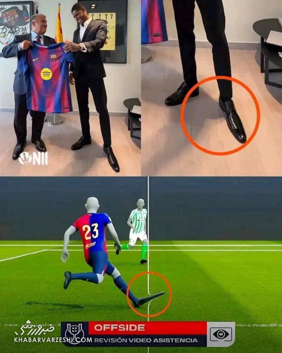 خبر ورزشی: تصویری که اخیراً از مارکوس رشفورد، ستاره جدید بارسلونا، در کنار خوان لاپورتا، رئیس باشگاه بارسلونا، منتشر شده، سوژه داغی در شبکه‌های اجتماعی به راه انداخته است. نکته قابل توجه در این تصویر، اندازه کفش رشفورد است که باعث شده بسیاری از هواداران فوتبال با کنایه به سیستم VAR و آفسایدهای میلی‌متری اشاره کنند.