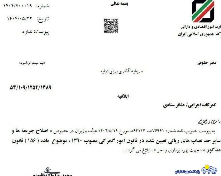 مصوبه پیشین هییت وزیران در خصوص نصابهای جرائم گمرکی در ادامه قابل مشاهده است؛