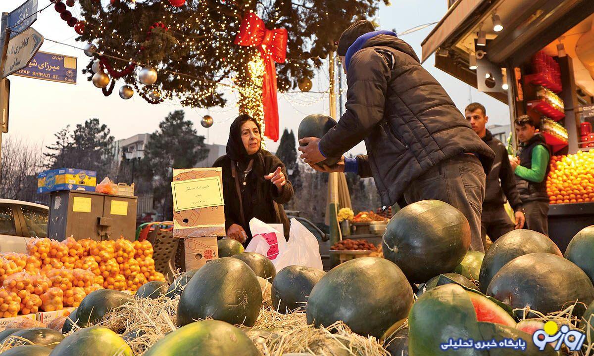 به گزارش روز نو سایت خبری تابناک نیز طی گزارشی با عنوان «گران‌ترین یلدای تاریخ رقم خورد» چنین نوشت که «رصد بازار میوه مصادف با شب یلدا در میوه‌فروشی‌های مناطق مرکزی رو به پایین شهر نشان می‌دهد که هر کیلوگرم ازگیل ۸۵ تا ۱۸۰ (هر بسته نیز ۲۴۸ هزار تومان)، انار ۱۰۵ تا ۲۷۰، انگور ۹۹ تا ۲۹۸، بلوط ۵۰۰، به ۷۰ تا ۱۲۰، پرتقال ۳۵ تا ۱۸۸، پرتقال جنوب ۱۰۰ تا ۲۳۸، توت فرنگی ۱۲۰ تا ۷۵۰ (هر بسته حدود ۲۰۰ گرمی ۲۰۰ تا ۳۲۰ هزار تومان)، خرمالو ۱۰۵ تا ۱۸۸، زالزالک ۱۲۵، سیب قرمز ۸۵ تا ۲۱۸، سیب زرد ۸۵ تا ۲۱۸، سیب سبز ۸۵ تا ۱۸۰، کیوی ۹۹ تا ۱۹۸ (هر بسته کیوی تو سرخ ۷۰۰ گرمی ۹۰ هزار تومان)، گریپ‌فروت ۴۹ تا ۷۹، گلابی ۱۲۵ تا ۳۶۸، لیمو شیرین ۱۳۵ تا ۱۹۸ و نارنگی ۸۴ تا ۱۵۸ هزار تومان در این بازار به فروش می‌رسد. همچنین در بازار میوه‌های آبدار هر کیلوگرم هندوانه ۳۳ تا ۴۶، خربزه ۳۶ و دستنبو ۴۱ هزار تومان است و در بازار میوه‌های وارداتی هر کیلوگرم موز ۱۰۵ تا ۱۶۸، انبه شیرین ۳۴۰، نارگیل ۱۸۵ تا ۲۵۰ و آناناس ۲۲۰ تا ۴۰۰ هزار تومان و هر بسته میوه تمبر هندی ۳۰۰ هزار تومان به فروش می‌رسد».