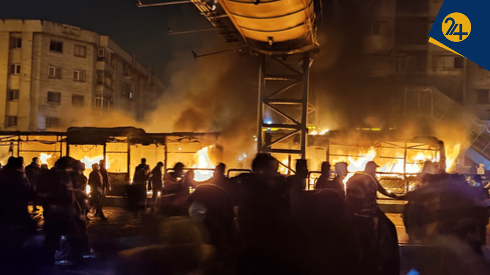 این رسانه تصاویری از آتش گرفتن یک اتوبوس شهری در خیابان آزادی تهران هم منتشر شده است.