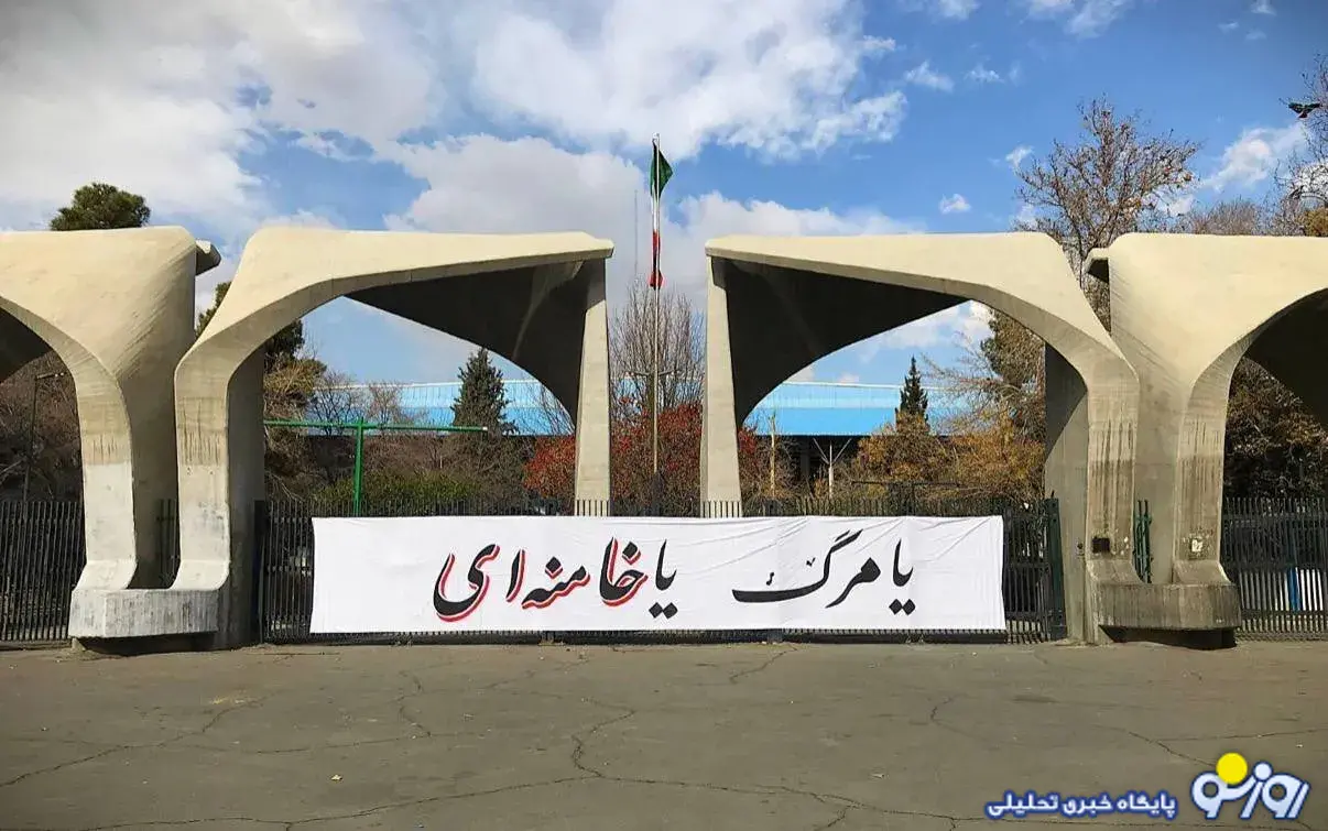 مفهوم سردر پارچه نوشته شده بر سر دانشگاه تهران چیست؟
