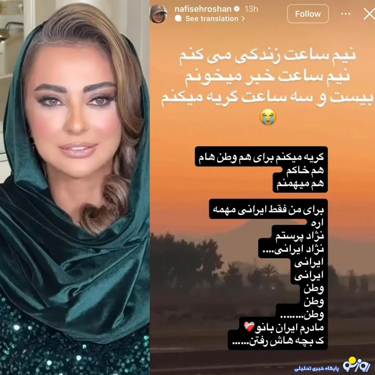 نفیسه روشن، بازیگر تلویزیون با انتشار یک استوری به حوادث تلخ دی ماه ۱۴۰۴ واکنش نشان داد و از حال و روز خود در این روز‌ها گفت.