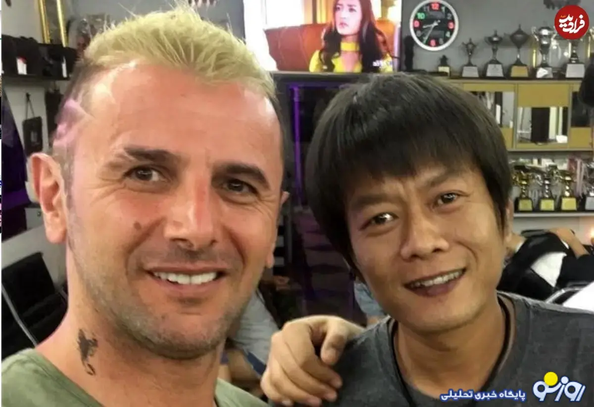 امین حیایی و پسرش دارا در اتاق گریم فیلم شعلهور