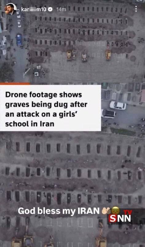 روزنو :کریم انصاری‌فردمهاجم تیم ملی فوتبال ایران استوری در صفحه اینستاگرامش منتشر کرده است و نوشت: به یاد دختران شهید میناب:خدایا ایران مرا حفظ کن