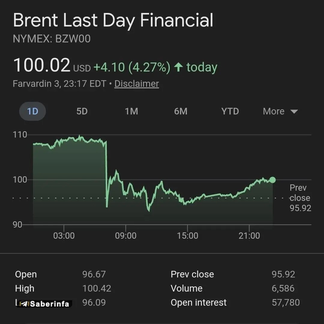 روزنو :قیمت نفت برنت به روند صعودی برگشت و از ۱۰۰ دلار عبور کرد.