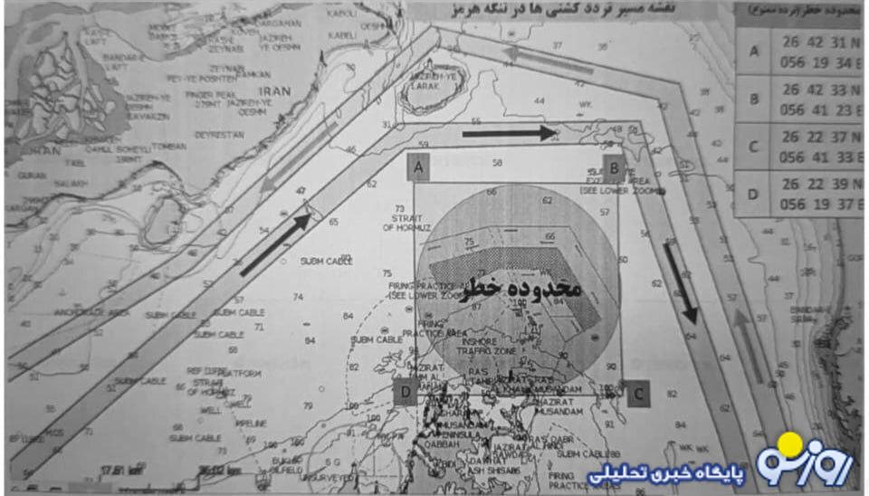 نیروی دریایی سپاه پاسداران انقلاب اسلامی با انتشار نقشهای از تنگه هرمز، و اعلام احتمال وجود انواع مینهای ضد کشتی در ترافیک زون اصلی تنگه، مسیرهای جایگزین برای تردد را اعلام کرد.