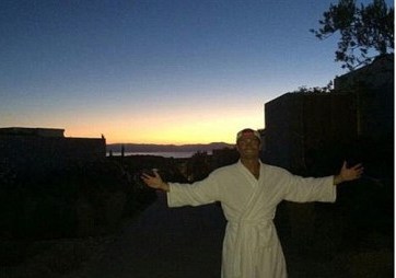 به گزارش روز نو، او که در روزهای اخیر عکس های متعددی از هلیکوپتر سواری خود و دیگر عکس های مربوط به خودش و نامزدش منتشر کرده اینبار عکس عجیبی را از خود روی توئیتر گذاشته است.