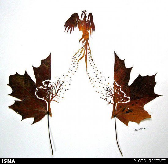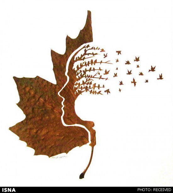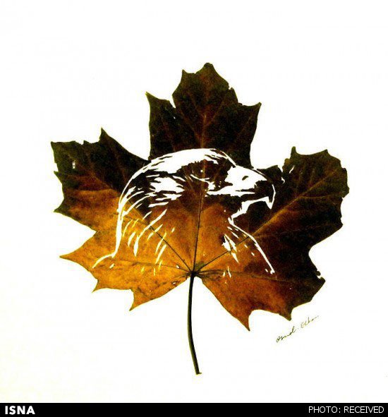 امید اسدی‌، هنرمند سی وپنج ساله ایرانی و ساکن آمریکاست که هنر خود را با ایجاد طرح بر روی برگ‌های خشک درختان به نمایش گذاشته است.