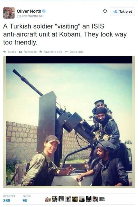 اولیور،خبرنگار فاکس نیوز این عکس را در حساب کاربری خود در توئیتر منتشر کرده و مدعی شده این عکس را یک سرباز آمریکایی در محدوده کوبانی گرفته است.