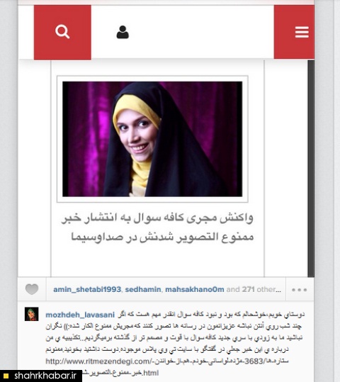 روزنو :مژده لواسانی در خصوص خبر ممنوع التصویر بودنش در اینستاگرام نوشت: